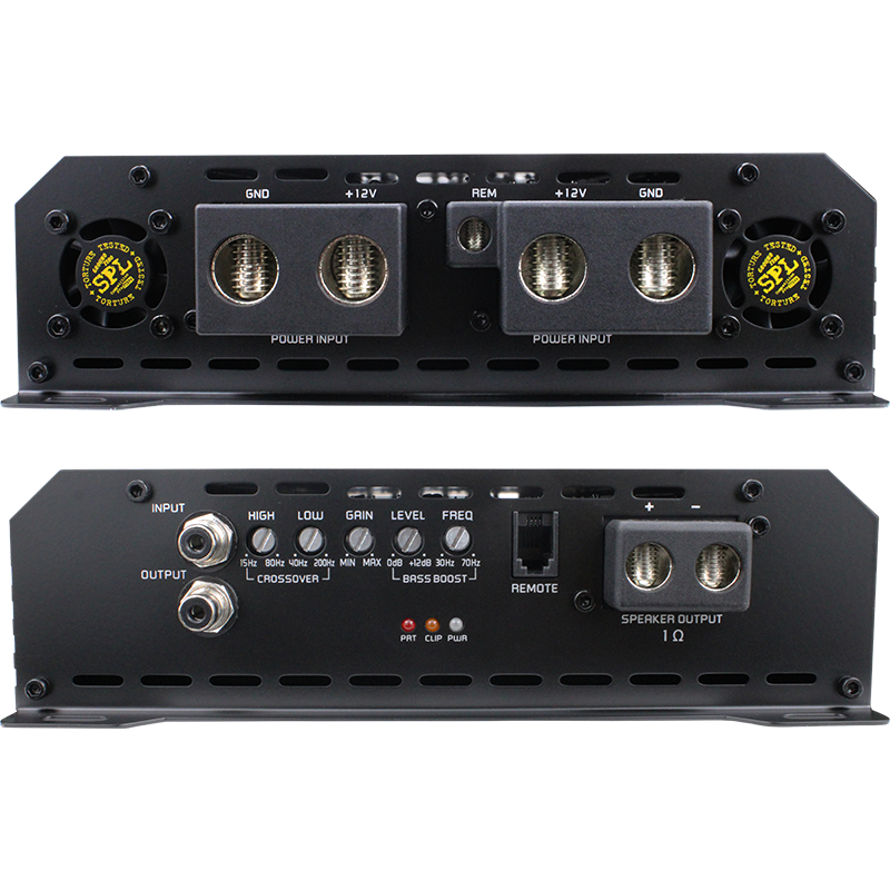 1-channel 1-ohm stable SPL high power amplifier with class D circuit, integrated active crossover and bass boost