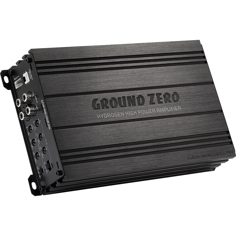 4-Kanal Verstärker mit hoch effizienter Class D Schaltung, integrierter Aktivweiche und kompakten Abmessungen für 24V Betrieb