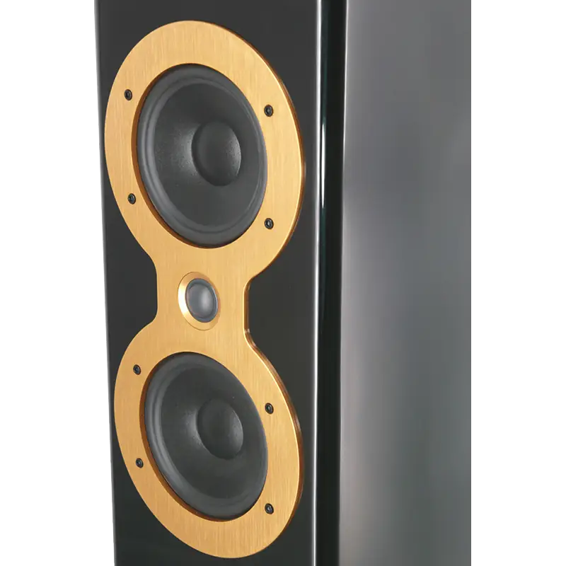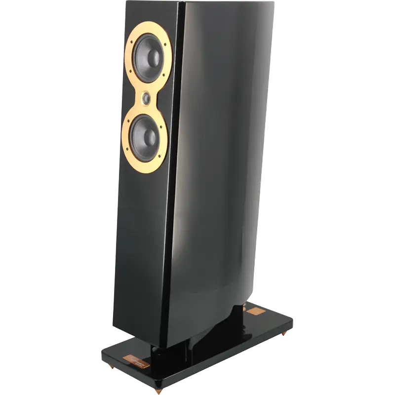 2-way D´Appolito speaker system in glossy black floor standing enclosure including downfire low frequency extension
