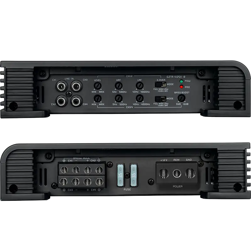Amplificador de alta qualidade classe A/B com 4 canais, circuito ativo integrado e resfriamento eficiente